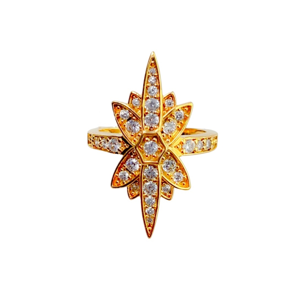 Anel Estrela 6 Pontas Microcravejado banho de Ouro + Verniz Antialergico